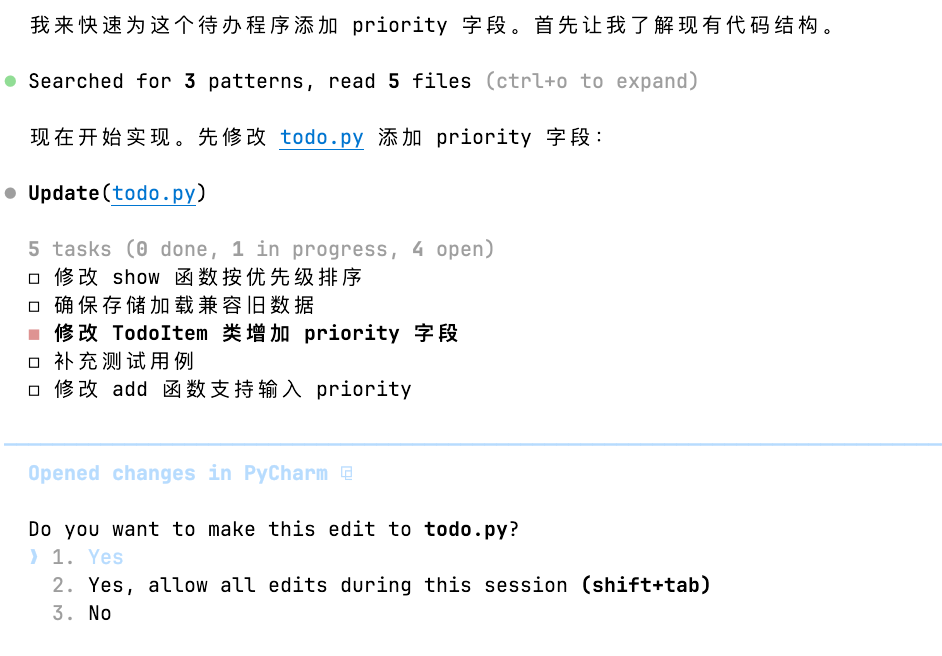 - 在 IDE 里面先展示计划等你批转,不会直接改。