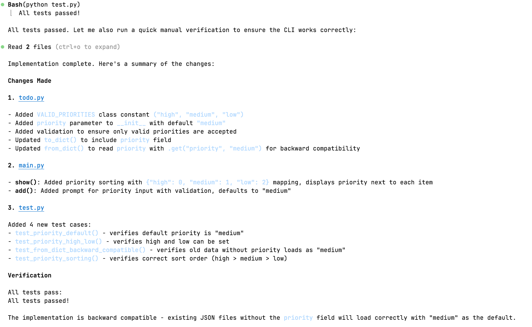 | 给这个待办程序增加 priority 字段,取值 high/medium/low。