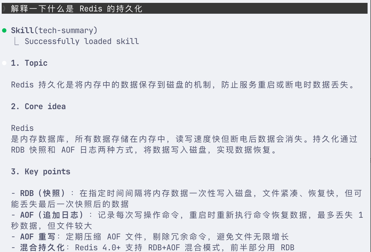 - 查看生效的 skills: /skills