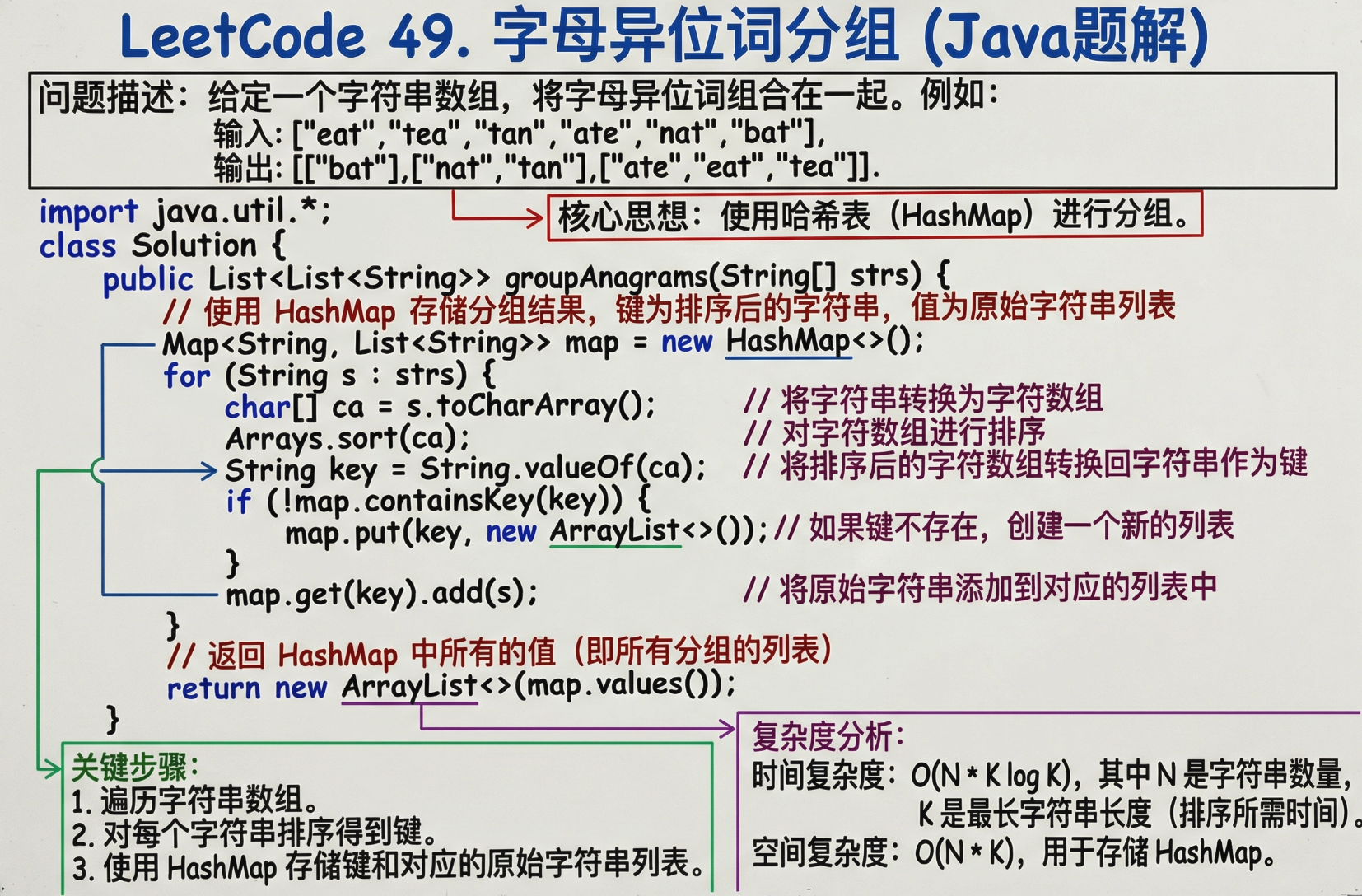 * 时间复杂度:O(n * k log k)(k 为单词平均长度)