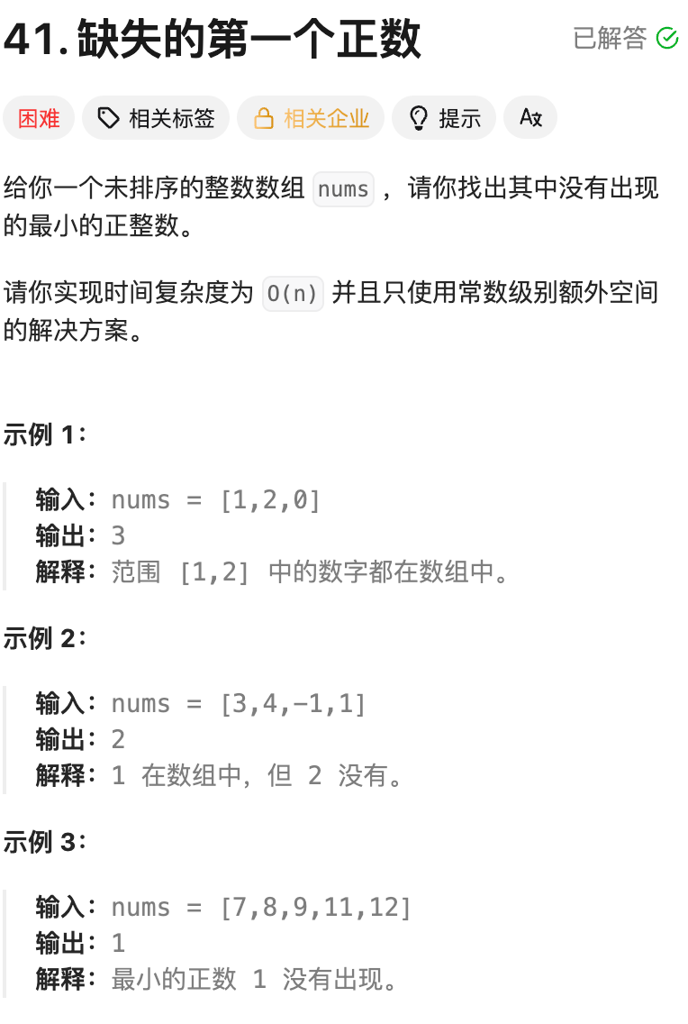 最后遍历一遍,第一个满足 nums[i] != i + 1 的位置就是。