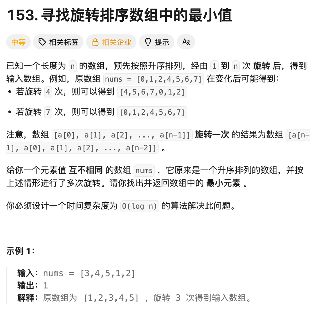 实验编号/标题:实验-leetcode-153-寻找旋转排序数组中的最小元素