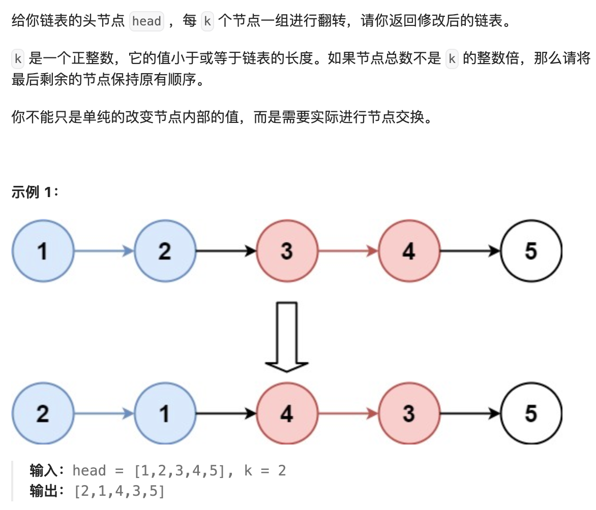 public ListNode reverseKGroup(ListNode head, int k) {