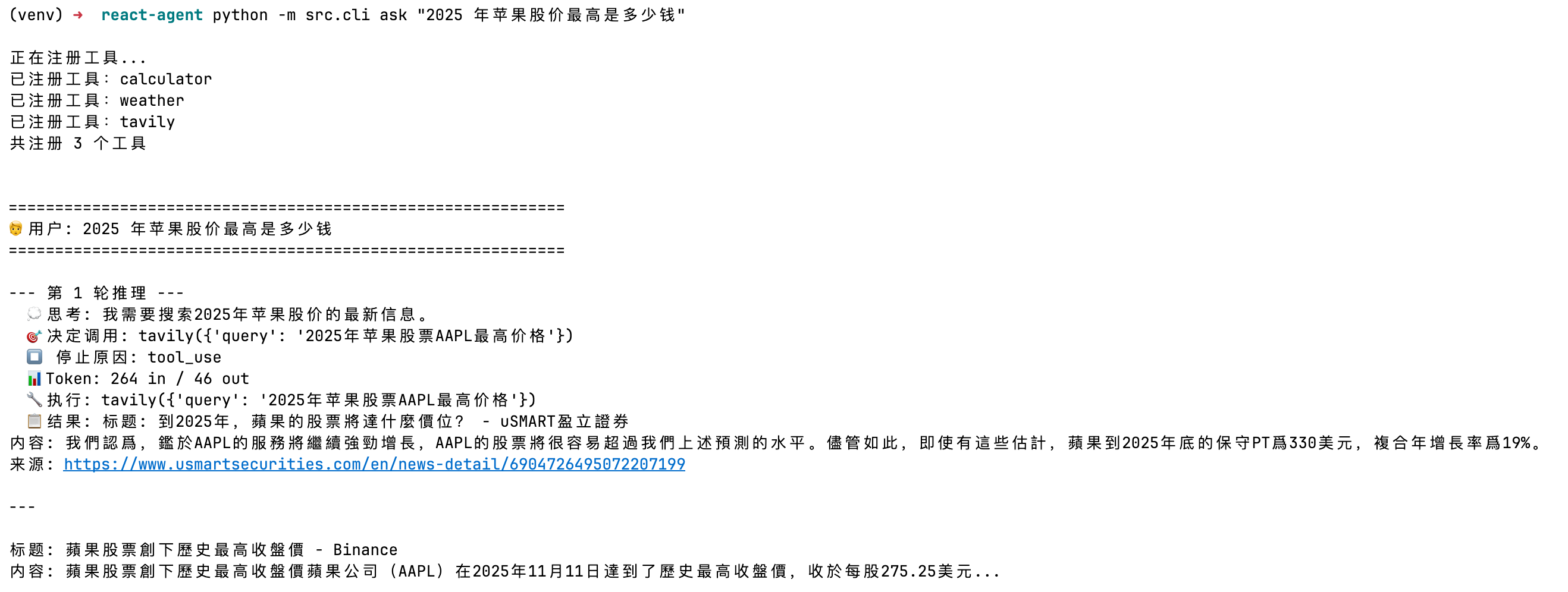 实验目标 (Objective):一个能使用搜索引擎和计算器回答复杂问题的 Agent。比如:“今年诺贝尔物理学奖得主的年龄加起来是多少?