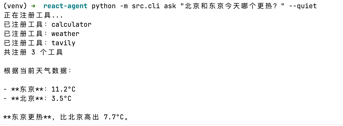 Q: ReAct 和 Chain-of-Thought 有什么区别? A: Chain-of-Thought 只让模型"想"(纯推理),ReAct 让模型"边想边做"——在推理过程中穿插工具调用获取真实信息。CoT 适合纯逻辑推理任务,ReAct 适合需要外部信息或执行操作的任务。实际中 Agent 几乎都用 ReAct 模式。
